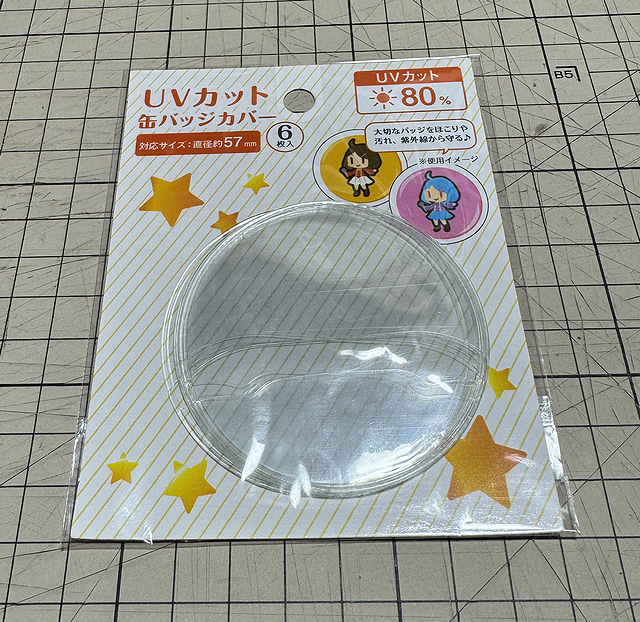 万一貼り合わせが剥がれたときの紛失防止とゴム部分劣化予防のため、一緒にWattsで買ってきた缶バッジカバーをつけました。