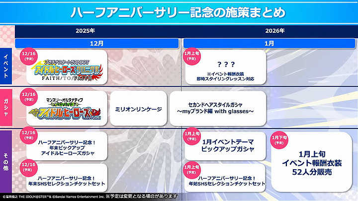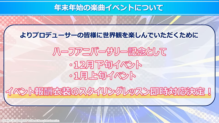 スタイリングレッスンが即時対応、また1月上旬イベントに関しては52人全員に有償衣装販売があったり特設ページが用意されたりと更に派手な内容になりそうな予感。またやみやみしちゃう感じか。年末年始だしな!