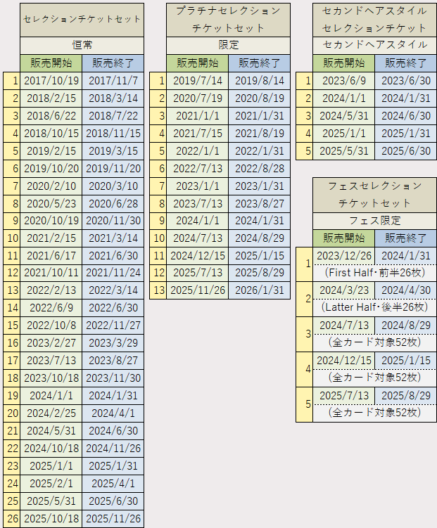 各種セレクションチケットセットは一定の期間ごとに有償ジュエルとの交換という形で販売されます。これらを活用できればSSRカード回収は大幅に楽になるでしょう。