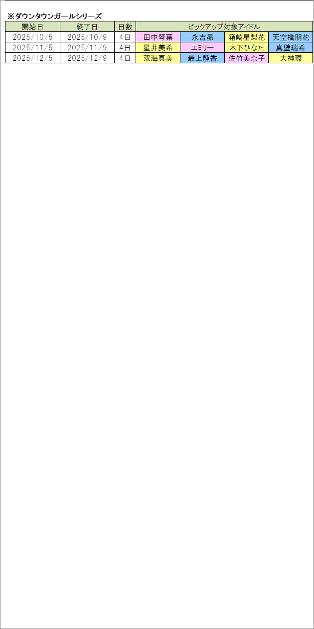 過去イベント開催日程・形式・報酬アイドル等一覧