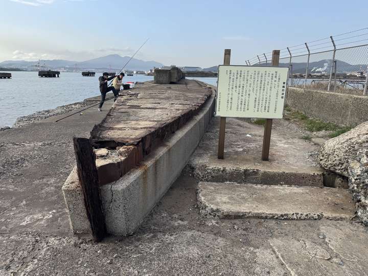 この船みたいな形の防波堤はその名も「軍艦防波堤」。というわけでこれ、本物の旧日本海軍の駆逐艦です。戦後に廃棄処分となった駆逐艦をここに沈めて防波堤にしたんだそうです。