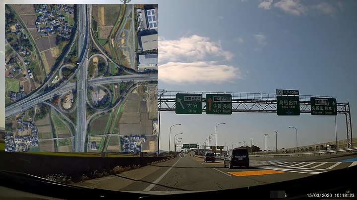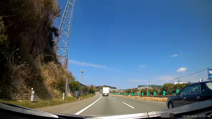 ドラレコ撮影大好き筆者、今回の遠征はリュックサック1つに荷物を厳選すると言いながら、わざわざマイカーから外して持ってきたドラレコで道中を撮影する奇行に走る。
