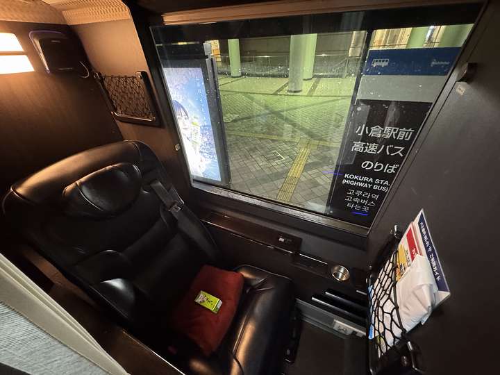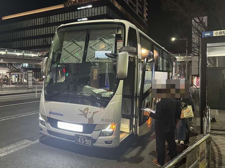 小倉駅で大量のミリオンPを積み込み独特の緊張感に包まれる車内。本当はどうもどうもって名刺交換くらいしたかったんですが、夜行バスって物音厳禁みたいなとこですからねえ。