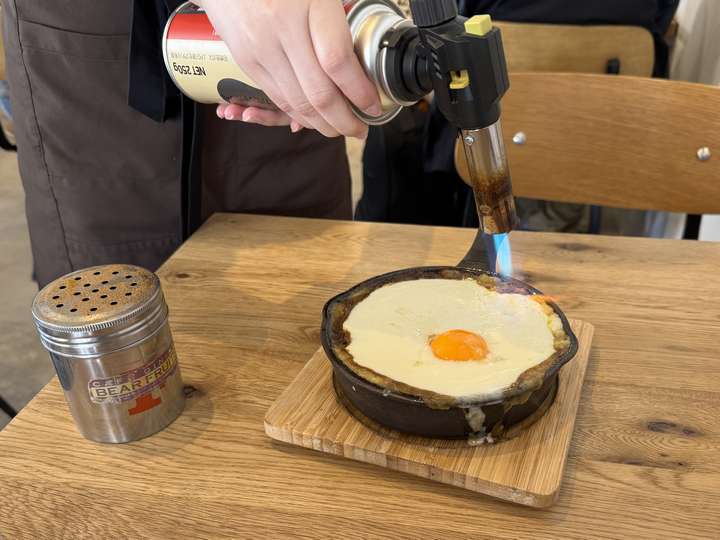 待つことしばし、配膳時に目の前で焼きを入れられるチーズ。