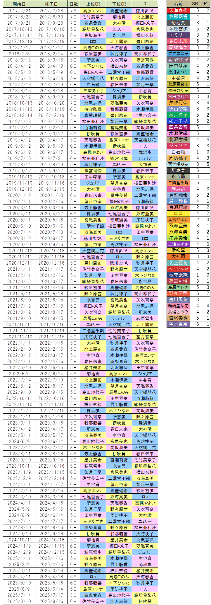 プラチナスターチーム過去ボーダーまとめ(詳細版)