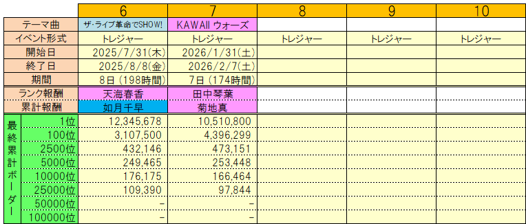 これまでに開催されたプラチナスタートレジャーの順位別ボーダー・日程・報酬等の一覧です。